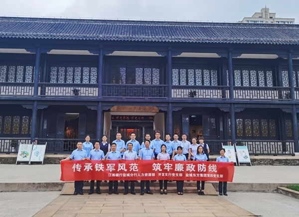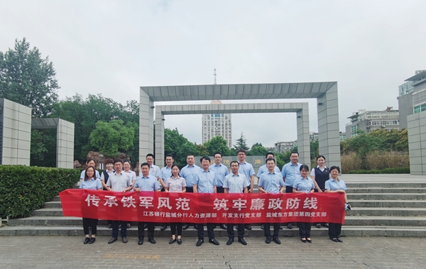 為進一步推動黨史學習教育走深走實,在統籌共建中增強黨組織凝聚力與戰斗力,推動黨員同志知黨史、知敬畏、守底線、干實事, 6月16日,鹽城東方集團第四黨支部與江蘇銀行鹽城開發支行黨支部,共赴鹽城泰山廟新四軍重建軍部舊址、鹽城廉政文化公園開展“傳承鐵軍風范 筑牢廉政防線”主題黨日活動。