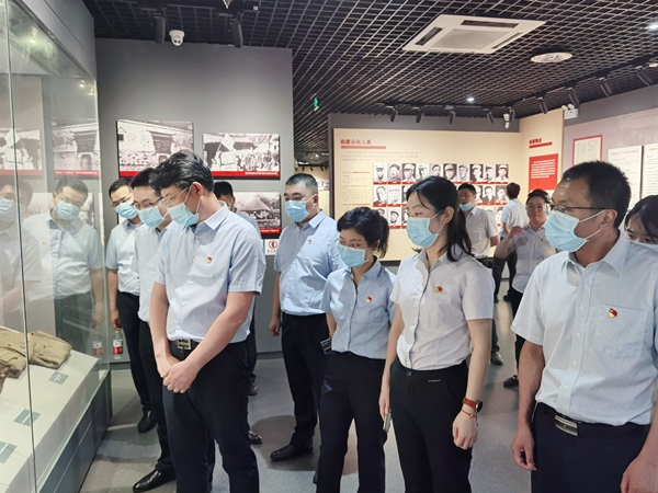 在泰山廟講解員的帶領下,全體黨員通過實物、照片、影像等展覽再現,走進了戰火紛飛的抗日戰爭歲月,看到了劉少奇、陳毅等新四軍領導人在這里指揮華中地區抗日根據地建立、抗日武裝力量發展,取得了一次又一次抗日戰爭的偉大勝利。一幅幅泛黃的照片、一件件簡樸的實物生動展示了新四軍領導華中軍民堅持抗戰的輝煌歷史,黨員們切實感受到了新四軍艱苦奮斗、守紀如鐵、清正廉潔的崇實風范,實地接受了一次深刻的黨史學習教育。