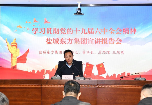 根據區黨工委統一安排,今天下午,鹽城東方集團舉行宣講報告會學習貫徹黨的十九屆六中全會精神。鹽城東方集團黨委書記、董事長、總經理王旭東作宣講報告。集團全體黨員和中層以上人員共160余人一同聽取報告。