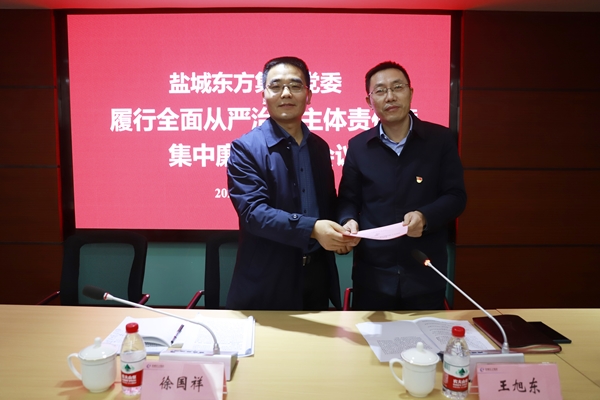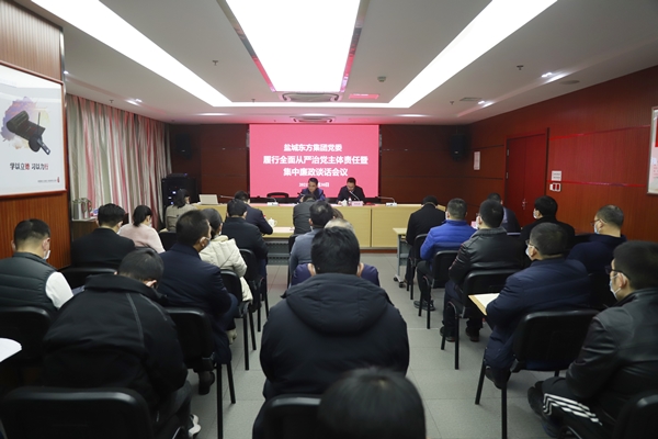 2022年元旦、春節(jié)臨近,為認真貫徹落實區(qū)黨工委會議精神,進一步壓實黨委履行全面從嚴治黨責任,對集團黨員干部節(jié)前再提醒,營造風清氣正的廉潔過節(jié)氛圍,12月30日下午,根據區(qū)紀工委統(tǒng)一部署,鹽城東方集團召開黨委履行全面從嚴治黨主體責任暨集中廉政談話會議。區(qū)紀工委副書記徐國祥出席會議并對節(jié)日期間作風建設工作提要求。集團黨委書記、董事長、總經理王旭東主持會議并開展集中廉政談話。