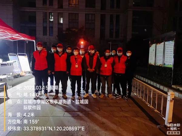 針對社區人員多、流動性強、疫情防控難度大的嚴峻形勢,根據區組織部調度,鹽城東方集團下沉包抓29幢居民樓,每天根據防控需要,派出50名志愿者到社區實行“敲門行動”,堅守一線,通過“鐵腳板”踩實城市的安全防線。