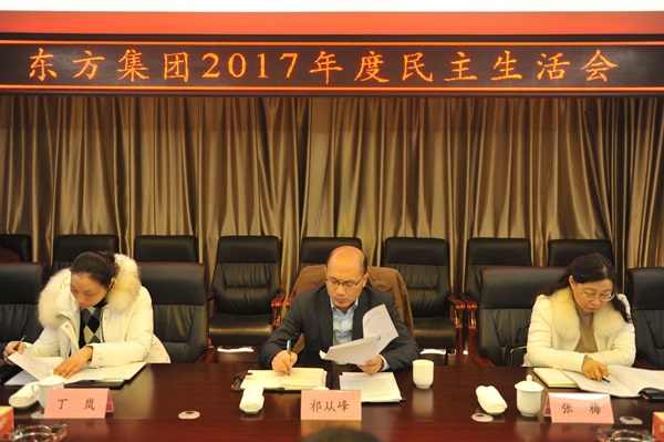 2月9日上午,東方集團黨委在集團1121會議室召開2017年民主生活會。區黨工委副書記、管委會副主任祁從峰同志出席會議并講話,區紀工委張梅同志、區組織部丁嵐同志到會指導。東方集團黨委書記、董事長張振國主持會議,集團黨委委員和班子全體成員參加會議。