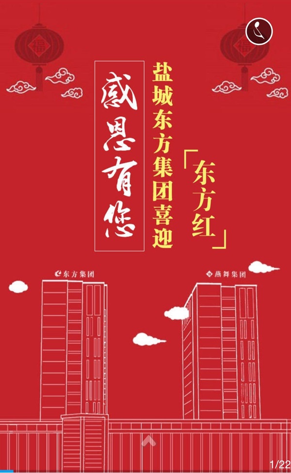 聯歡會最后,《感恩有你 鹽城東方喜迎“東方紅”》的H5輕應用以其新穎的表現方式、美好的新年展望、熱忱的新年祝福,讓東方員工倍覺親切、深受鼓舞,紛紛在朋友圈熱情轉發。