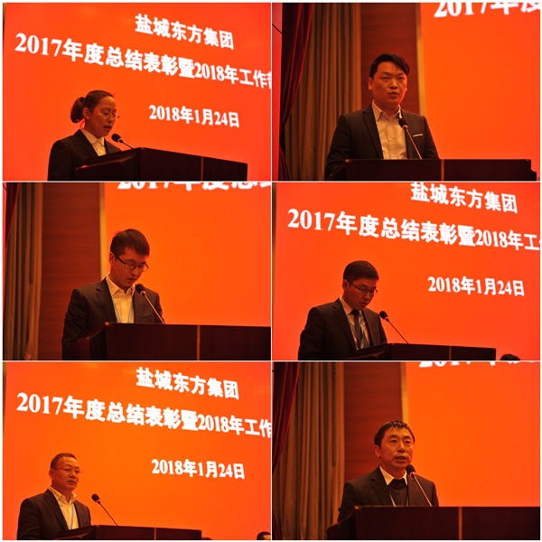 會議對15個先進集體和25名先進個人進行了表彰;播放了東方集團2017年發(fā)展回眸、2018年工作展望專題片《轉(zhuǎn)型創(chuàng)新東方紅》;6名集團員工代表從不同層面作了表態(tài)發(fā)言;集團班子成員依次向張振國遞交黨的建設(shè)責(zé)任書、安全生產(chǎn)責(zé)任書。