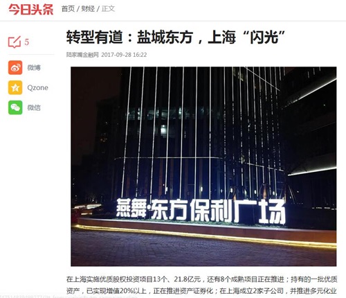 優(yōu)質(zhì)資產(chǎn)實現(xiàn)增值、房產(chǎn)出租穩(wěn)步增收,就在不少同行羨慕鹽城東方在上海睿智決策之時,殊不知,東方集團已把在上海持有規(guī)模優(yōu)質(zhì)資產(chǎn)作為“走進”上海的“敲門磚”和“開場白”,精心策劃的轉(zhuǎn)型好戲?qū)㈥懤m(xù)上演。