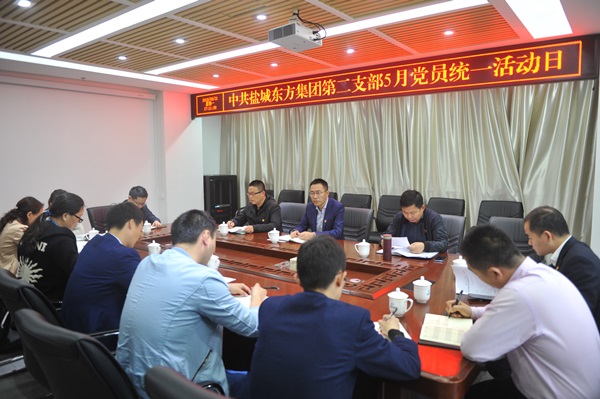 5月21日,鹽城東方集團黨委下設的七個黨支部分別開展5月份“基層黨組織統一活動日”活動。集團領導張振國、王旭東、吳將、王成林、王建旭、華小軍、孫為軍分別到所在黨支部參加活動。