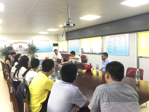 圖為未來科技城項目部負責人向新員工介紹項目基本情況