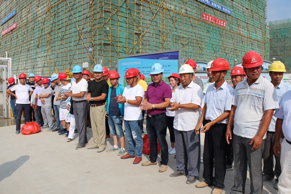 在與建筑施工人員交流中,集團領導叮囑現場各班組管理人員一定要將工作時間巧安排,避開中午高溫作業時間,并保證降溫防暑措施到位,防止因高溫天氣引發的員工中暑等安全事故的發生。