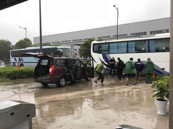 圖為臺風來臨前組織項目部施工人員疏散撤離