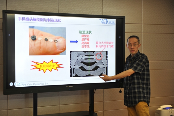圖為廈門頡軒光電有限公司創(chuàng)始人孫鋒青介紹公司基本情況