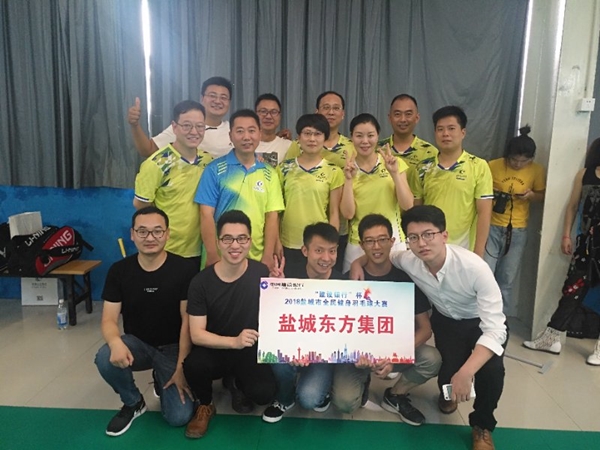 8月18日,由中國建設銀行鹽城分行、鹽城廣播電視總臺、鹽城市羽毛球運動協會聯合主辦的“建設銀行”杯2018鹽城市全民健身羽毛球大賽在悅達悅達健身廣場隆重舉行。全市各地的25支代表隊共300余人參賽。東方集團羽毛球愛好者陳海濱、陶偉國、夏明志積極組隊參賽,并成功沖出小組賽進入前八強,展示出東方集團奮進拼搏、昂揚向上的精神風貌。