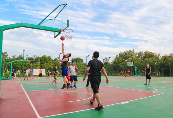 ▲居民在東方公園籃球場(chǎng)打球