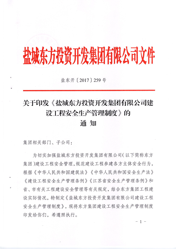 抓精品工程建設,全力創塑品牌形象。重抓精品工程建設,嚴格按國家、省、市安全標準化模式和質量標準,東方集團質量安全等管理制度明確了建設工程三級質量安全管理體系;明確了建設單位各級質量管理崗位職責;明確了參建責任主體的工作職責,還明確了樣板引路制、見證取樣制、飛行檢查制、不合格品拆除制等質量制度。全力創塑東方集團品牌工程,未來科技城一期二期三期、北師大鹽城附校等4個項目爭創“揚子杯”,悅欣花園、東方之洲門戶區等15個項目爭創省文明工地。