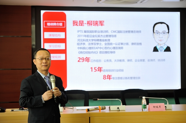 柳瑞軍簡介:清華大學總裁班授課講師、北京大學營銷總裁班特聘講師、中科院心理所EAP中心簽約咨詢師、河北科技大學特聘客座教授,有10多年在國家機關、集團公司、上市公司等擔任高管工作經歷,長期專注于思維訓練、管理創新和變革領導力領域的研究、咨詢和培訓,思維開闊,授課生動,注重落地,實操性強,為黨政機關及事業單位、500強企業及大型集團公司累計培訓近千場。