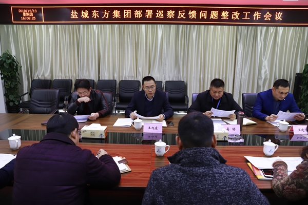 12月13日,鹽城東方集團在1115會議室組織召開部署巡察反饋問題整改工作會議,會議由集團黨委副書記、副董事長、總經理王旭東主持,集團副總經理吳將、王成林、王建旭,集團相關部門及子公司負責人出席會議。