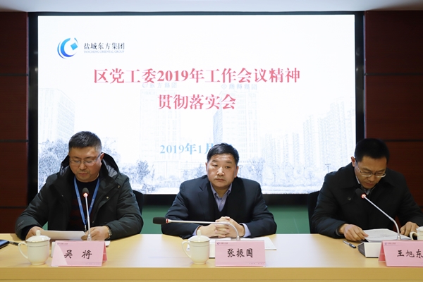 集團黨委副書記、總經理王旭東傳達區黨工委書記戴榮江講話精神。2018年以來,在市委、市政府的堅強領導下,全區上下堅決認真落實“三市”戰略,積極踐行“兩海兩綠”路徑,以中韓(鹽城)產業園建設為抓手,堅持項目立區,統籌做好穩增長、促改革、調結構、惠民生、防風險各項工作,高質量發展實現良好開局。從中韓(鹽城)產業園建設加快推進、雙招雙引質效提升、重點改革穩步推進、民生福祉持續改善、黨的建設不斷加強等方面對2018年工作進行了回顧。研究部署2019年工作,動員全區上下圍繞“三市”戰略,踐行“兩海兩綠”路徑,聚焦中韓(鹽城)產業園建設,牢固樹立項目立區理念,堅定創新引領導向,突出五項重點,加快建設六大產業載體,落實落地七項具體任務,為高水平建成小康社會完美收官打下決定性基礎,推動高質量發展走在蘇北蘇中前列。