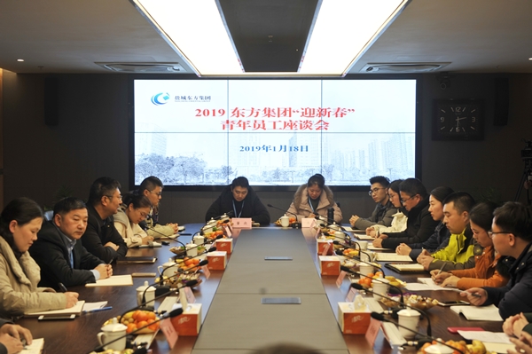 1月18日,為了解集團青年員工生活工作的情況,傾聽青年員工心聲,鹽城東方集團組織召開2019年“迎新春”青年員工座談會,集團黨委書記、董事長張振國出席會議并講話,集團副總經理吳將主持會議,集團各部門、子公司20余位青年員工代表參加。