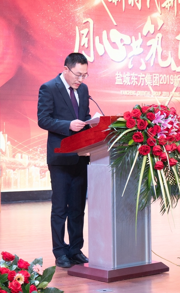 鹽城東方集團黨委書記、董事長張振國發表新年致辭。