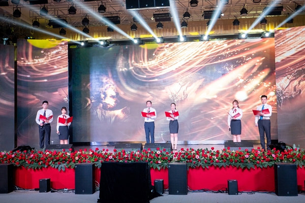 詩朗誦《新年快樂》道出了東方人共同的理想與目標,鏗鏘有力的《走向復興》唱出了東方人的壯志雄心,《東方集團第二屆吐槽大會》搞笑逗趣的段子將聯歡會推向了高潮……1月26日,鹽城東方集團在鹽城國際會展中心A館舉辦2019年迎新春聯歡會,此次聯歡會主題是“新時代、新使命,同心共筑東方夢”。集團各部門、各子公司共300余名“東方人”,參與了此次盛會。