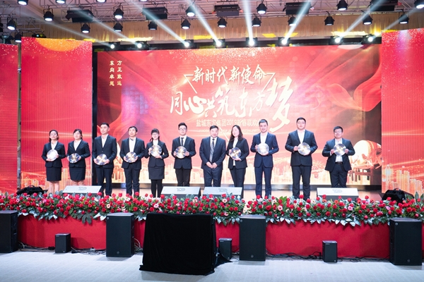 鹽城東方集團黨委書記、董事長張振國發表新年致辭。他代表集團黨委向出席今天聯歡會的全體員工、先進個人的家屬們表示熱烈的歡迎并致以新春的問候。在講話中,他全面總結回顧了2018年以來集團各項事業取得的喜人成績,展望2019,希望東方集團全體員工在新的一年里和衷共濟,逐夢前行,立足高起點實干苦干,謀求高質量攻堅克難,奮力實現“接軌上海走在鹽城大市區前列、轉型升級走在蘇中蘇北國家級經開區國有企業前列”高質量發展目標。