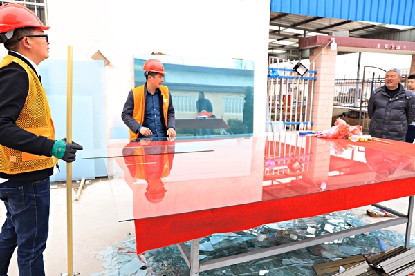 3月25日清晨,集團副總經理王建旭帶領20人的援建隊伍趕赴救援現場,對新光村受損房屋進行勘察統計并科學制定維修方案,根據需要將市場上緊缺的玻璃、鋁型材訂購計劃發往鹽城各采購點。根據要求,計劃一周內將門窗破損等輕微受損的房屋全部修復到位。