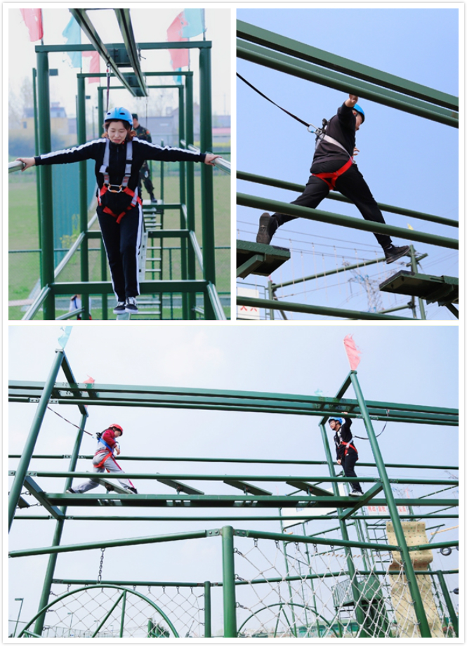 隊員們在教練的帶領下,群策群力,團結協作,圓滿完成了穿越電網、高空斷橋、同心圓、軍事體驗等訓練環節。項目進行中,既挑戰了個人極限,又彰顯了團隊魅力。