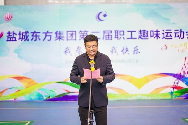 開幕式上,鹽城東方集團黨委委員、副總經理、工會主席吳將發表了熱情洋溢的講話。吳總在講話中對趣味運動會的召開表示了衷心的祝賀,向運動會籌備組和裁判組的成員們,以及積極組織參與活動的員工們表示誠摯的謝意。鼓勵大家發揚“更高、更快、更強”的奧林匹克精神,以運動會激發出的飽滿熱情,充沛活力,積極投身到公司的發展中去,并預祝第二屆趣味運動會取得圓滿成功。