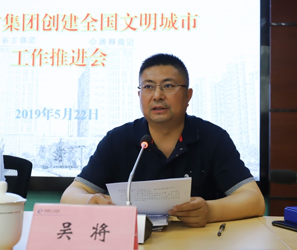 為及時傳達學習貫徹區創建全國文明城市推進會會議精神,5月22日下午,鹽城東方集團召開鹽城東方集團創建全國文明城市工作推進會,集團黨委書記、董事長張振國就創文工作提出明確要求,集團黨委委員、副總經理吳將主持會議。集團各部門、子公司、各項目負責人參加會議。