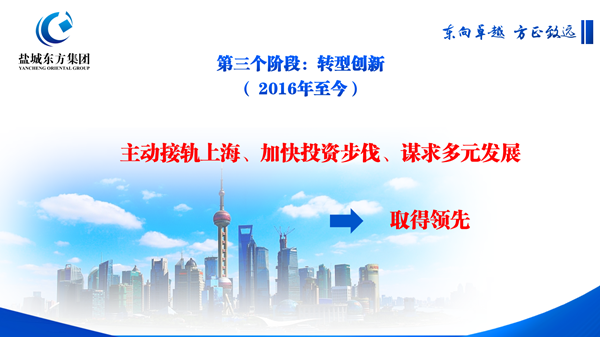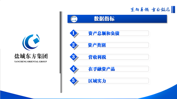 在現(xiàn)場推介階段,鹽城東方集團(tuán)黨委書記、董事長張振國結(jié)合PPT,從發(fā)展歷程、財務(wù)指標(biāo)、優(yōu)勢特色等角度圖文并茂地推介了集團(tuán)的發(fā)展亮點,精彩呈現(xiàn)了東方集團(tuán)16年發(fā)展歷程中從小到大、由弱變強(qiáng)的企業(yè)蛻變,一串串有說服力的數(shù)據(jù)指標(biāo)、一個個優(yōu)質(zhì)的重點項目、一行行優(yōu)異的工作業(yè)績,組合成一張亮眼的“成績單”,見證了東方集團(tuán)初步實現(xiàn)“全市標(biāo)桿、蘇北領(lǐng)先、全省有位、上海有突破、全國有影響”的發(fā)展目標(biāo)。