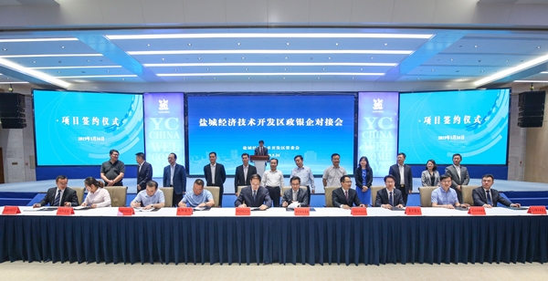 5月24日上午,鹽城經(jīng)濟(jì)技術(shù)開發(fā)區(qū)政銀企對接會在鹽城國際會展中心舉行。人民銀行、銀保監(jiān)局、市地方金融監(jiān)管局相關(guān)領(lǐng)導(dǎo),20多家省市知名金融機(jī)構(gòu)負(fù)責(zé)人參加活動。區(qū)管委會主任徐龍波作了熱情洋溢的致辭。據(jù)悉,本次會議是鹽城經(jīng)開區(qū)歷屆政銀企對接活動規(guī)模最大的一次,全區(qū)60個融資項目得到了各家金融機(jī)構(gòu)共計118億元的融資授信,其中鹽城東方集團(tuán)及下屬子公司分別與市、區(qū)四家金融機(jī)構(gòu)簽約。
