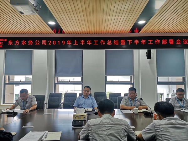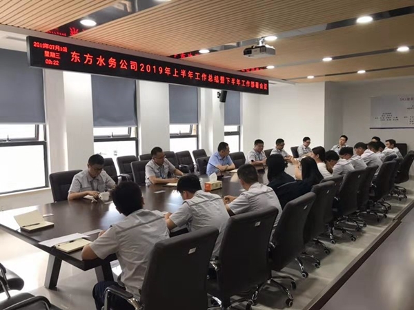 7月10日上午9點,江蘇東方水務公司組織2019年上半年工作總結暨下半年工作部署會議,東方集團副總經理、東方水務總經理王建旭及水務公司全體員工參加了本次會議,會議由水務公司副總經理沈效偉主持。
