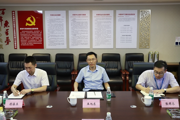 8月1日下午,深圳市宏創威科技有限公司總經理王婷一行到我司考察交流。集團副董事長、總經理王旭東在集團11樓東會議室熱情接待了王婷一行。