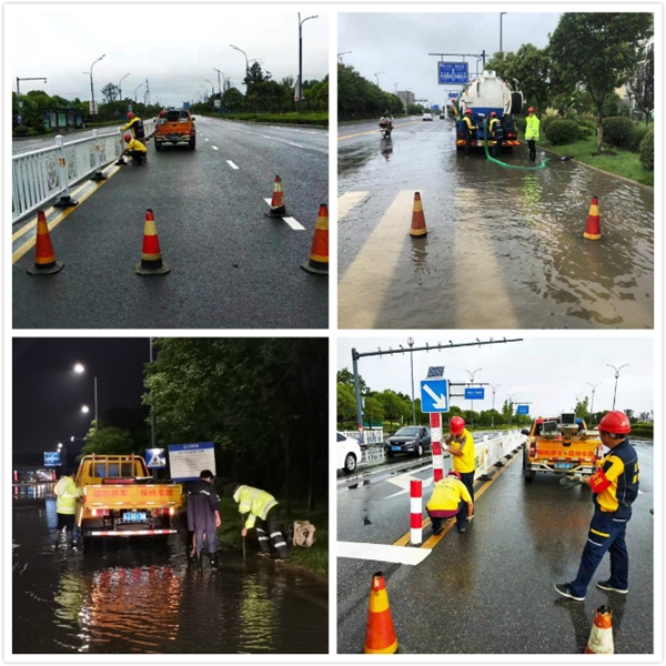 為做好第9號臺風“利奇馬”防御工作,東方安通各處奮戰在一線,所有員工堅守崗位,標志標線護欄管理處積極扶倒伏護欄;信號燈管理處維修信號燈,爆閃燈為城市照明提供一份安全保障;路燈管理處全體員工堅守崗位,冒著大雨,發現故障及時排查處理到位;市政管理處對全區雨水管網積水進行排查整治,夜間加大巡查頻率,發現區內蔡尖光園由于高架建設影響,雨水管網不暢而導致路面大量積水,立即安排夜間值班人員對其進行搶險排澇。
