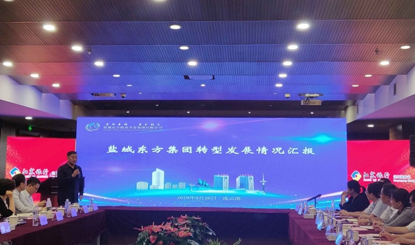 9月26日,由江蘇銀行主辦的“2019地方平臺轉型發展論壇”在連云港舉行,鹽城東方集團董事長張振國受邀參會并作“東方集團轉型發展”主題匯報演講。江蘇銀行總行、連云港分行主要領導、中誠信首席經濟學家和連云港當地19家國企代表100余人參加論壇。