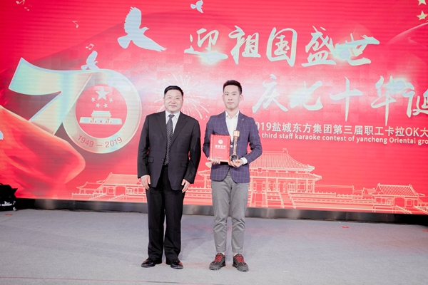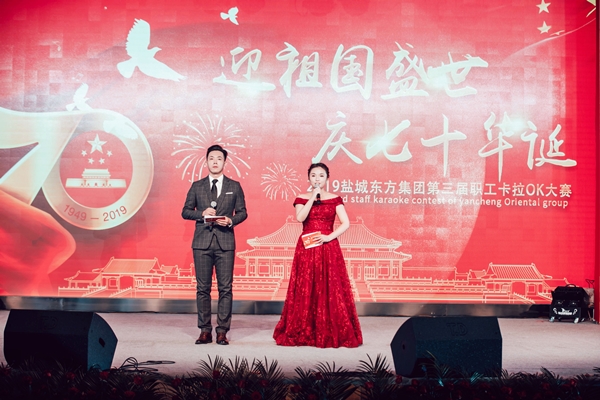 10月11日,鹽城東方集團“迎祖國盛世 慶七十華誕”2019第三屆職工卡拉OK大賽決賽在鹽城國際會展中心隆重舉行。集團領導班子及各部門、子公司人員200余人歡聚一堂,共同慶祝新中國成立70周年。