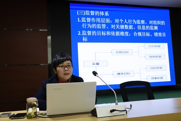 孫慧華結合新形勢,圍繞我國的監督體系、審計監督的體系、審計監督的依據、審計監督的方法、審計結果的利用和落實等五方面進行了詳細的講解。從宏觀方面出發,講解了社會運行權利、監督形成的前提、監督體系的內容,介紹了國家審計、外部審計以及內部審計的區別,并結合自身審計工作經驗,闡明了審計監督的具體辦法和工作面臨審計問題時的具體應對方法和措施。