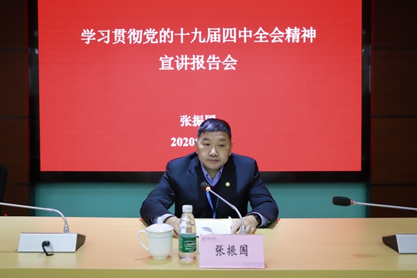 張振國董事長就全面深入貫徹落實全會精神強調以下三點,一要深刻理解把握十九屆四中全會精神,進一步明確國企的職責使命;二要深刻理解把握堅持和完善黨的領導制度體系的新部署新要求,切實加強國企黨的領導黨的建設;三要深刻理解把握堅持和完善社會主義基本經濟制度的部署要求,進一步完善企業治理體系,推動集團高質量發展。