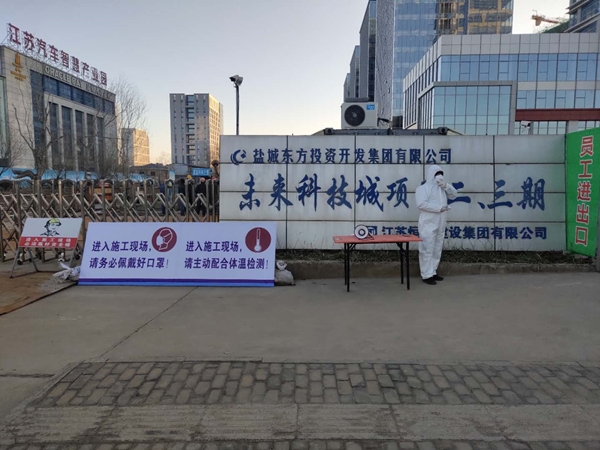 自鹽城東方集團(tuán)2月13日召開(kāi)建設(shè)工程復(fù)(開(kāi))工與疫情防控專(zhuān)題工作會(huì)議后,東方置業(yè)未來(lái)科技城項(xiàng)目部按照市、區(qū)疫情防控各項(xiàng)要求,提前布置各項(xiàng)準(zhǔn)備工作,組織疫情防控專(zhuān)題學(xué)習(xí)、統(tǒng)計(jì)外地來(lái)鹽人員信息、工地人員出入管理及健康監(jiān)測(cè)等。在堅(jiān)決打贏疫情防控阻擊戰(zhàn)的同時(shí),確保復(fù)工條件全部達(dá)標(biāo),保證項(xiàng)目如期復(fù)工;2月14日,未來(lái)科技城項(xiàng)目部組織建設(shè)單位、監(jiān)理單位、施工單位到我區(qū)SKI項(xiàng)目現(xiàn)場(chǎng)學(xué)習(xí)復(fù)工準(zhǔn)備措施;2月15日下午邀請(qǐng)區(qū)住建局對(duì)未來(lái)科技城項(xiàng)目防疫與復(fù)工準(zhǔn)備工作進(jìn)行檢查指導(dǎo);在東方集團(tuán)復(fù)工檢查組對(duì)該項(xiàng)目復(fù)工驗(yàn)收通過(guò)后,未來(lái)科技城項(xiàng)目已于2月18日正式復(fù)工。