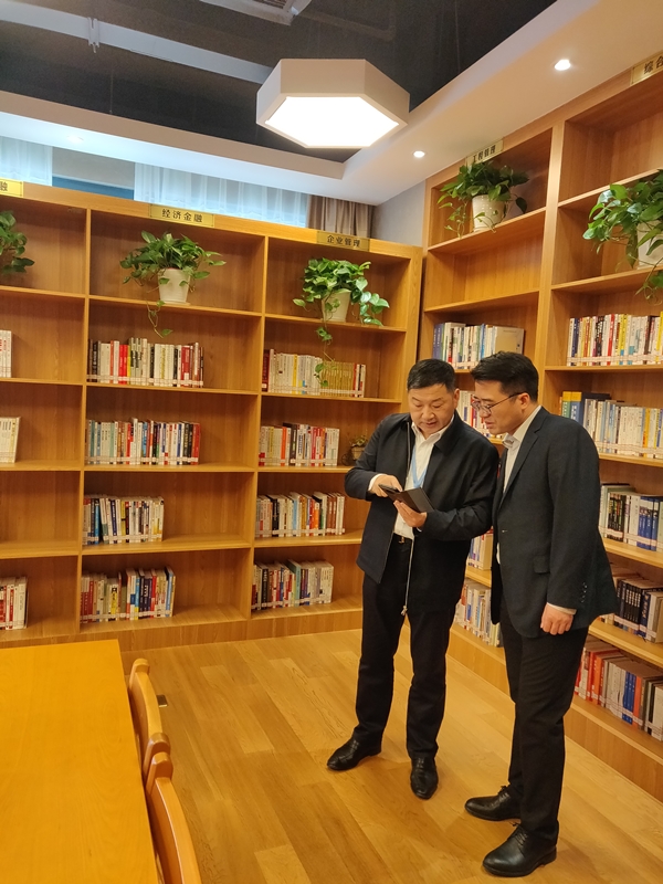 張振國向劉堅一行介紹集團閱覽室電子學習平臺