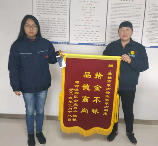 拾金不昧、默默無聞,這些詞語,詮釋的不僅是人們的美好品德,更是贊美那些在平凡的崗位上用實際行動踐行美好品德的人們,鹽城經開區(qū)“2020年第一季度開發(fā)區(qū)好人”——東方物業(yè)保潔阿姨張翠芳、劉榮紅就是這樣的踐行者。