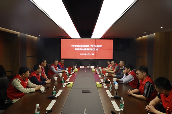 市文明尋訪團與東方集團結對共建簽約儀式在東方集團7樓一號會議室舉行。市文明尋訪團團長肖兆玉與東方集團黨委委員、副總經理吳將代表雙方簽定了創文結對共建協議。雙方表示,將合力參與創文行動,以深入開展創建文明城市活動為抓手,同頻共振,履行好所承擔的工作任務,為全面融入文明城市創建貢獻智慧和力量。