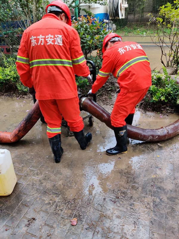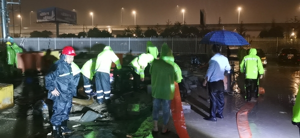 為切實保障經(jīng)開區(qū)重大項目安全有序施工,市民出行便利,6月28日夜間,東方安通公司組織5輛工程車、15名員工在暴雨中對區(qū)內(nèi)185公里市政道路、20余公里中隔帶護欄、165個路口信號燈進行巡查,排查道路積水情況進行梳理匯總。6月29日凌晨2點鐘,接到區(qū)內(nèi)重大項目SK-I的防汛任務(wù)后,東方安通團隊組織應急隊伍和搶排設(shè)備緊急趕往現(xiàn)場,協(xié)助項目工地場地做好排水安全工作。