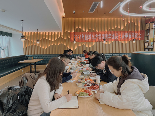 2月7日,東方集團團委在星韻咖啡會展店召開青年團員代表春節座談會。15名團員青年代表參加座談。
