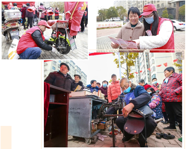 上午9點,活動正式開始,志愿者們有的在熱心地給居民發放十九屆五中全會宣傳彩頁,講解相關知識;有的幫助居民修剪指甲,有的給居民縫補衣物,有的手不停歇地清掃垃圾……在居民自發的口耳相傳下,來到便民服務崗的居民越來越多,便民服務崗的志愿者們熱情、周到、細致的服務,讓居民感受到了濃濃的暖意。