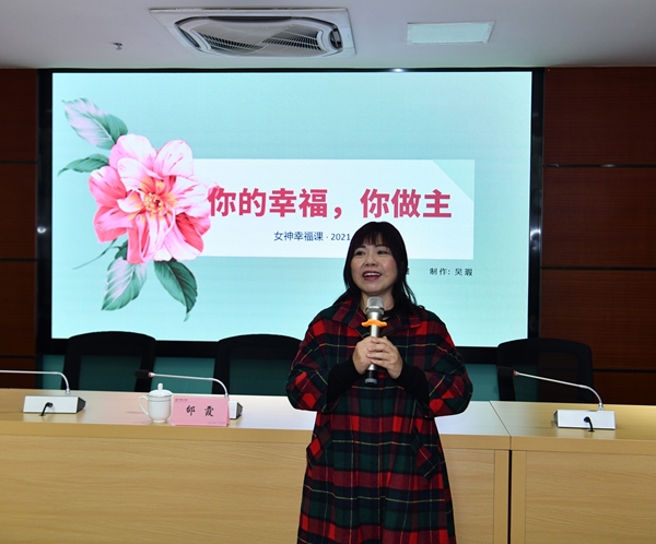 此次專題講座特邀請女性心理健康專家邰霞前來授課。邰霞以“要愛自己”為切入點,結合工作、學習、家庭、生活、人際交往等方面,引導廣大女性始終保持樂觀向上的心態,在生活中充滿自信,敢于展現自我,樹立正確的家庭觀、人生觀、價值觀。講座圍繞“如何獲得幸福感?”等問題開展現場交流,在解疑答惑中啟發女職工感悟生活,正確接受并評價自己,加強自我修養與自我完善,努力做一個自我快樂又適應環境的新時代女性。