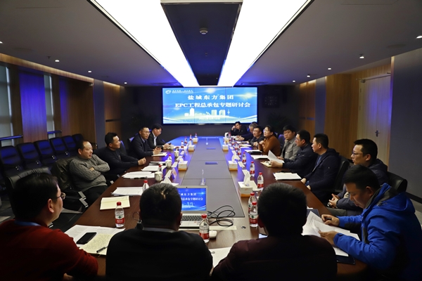 3月12日,鹽城東方集團在7樓1號會議室組織召開EPC工程總承包項目管理研討會。鹽城東方集團黨委副書記、副董事長、總經理王旭東主持會議,集團黨委委員、副總經理王成林參加研討會。集團特邀江蘇中柢建設集團新都路小學和鹿鳴路小學項目經理王曉武、造價工程師蔡金亮,作經驗分享和交流。集團在建重點工程負責人及相關人員等近20人參加會議。