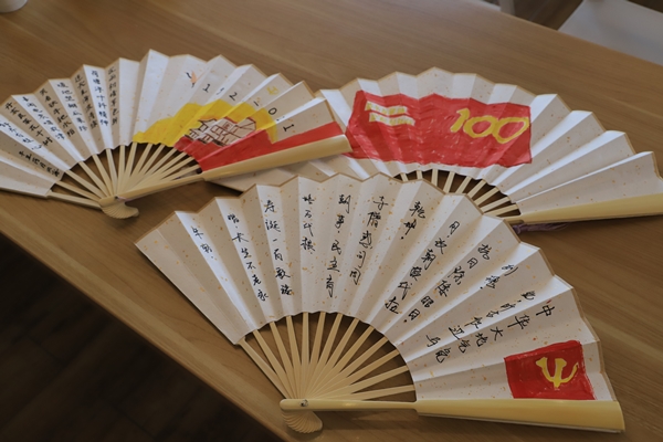 巧手繪扇面,濃情頌黨恩。當天下午3點,手繪團扇活動在一片歡聲笑語中進行。100余名女員工興高采烈地來到三樓員工餐廳,互相交流畫什么內容,表達自己的心聲。活動中,大家認真思考、用心作畫。勾勒、配色、描摹,圖案輪廓在筆尖的勾勒下漸顯形態,蒼翠的青竹、傲立的臘梅、清雅的荷花躍然扇面之上。有的人則繪出黨徽、黨旗圖案,巧妙嵌入“100”字樣,直抒胸臆表達對建黨100周年的歡喜之情。