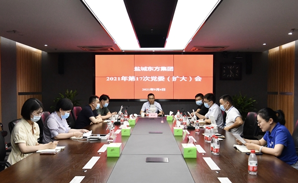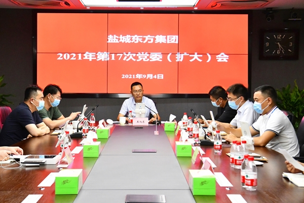9月4日下午,鹽城東方集團在集團七樓1號會議室召開2021年第17次黨委(擴大)會議,傳達(dá)學(xué)習(xí)市、區(qū)會議精神,研究部署近期重點工作。集團黨委書記、董事長、總經(jīng)理王旭東主持會議并講話。集團黨委領(lǐng)導(dǎo)班子成員出席會議,集團總會計師列席會議,中層以上人員、子公司經(jīng)營層參加會議。
