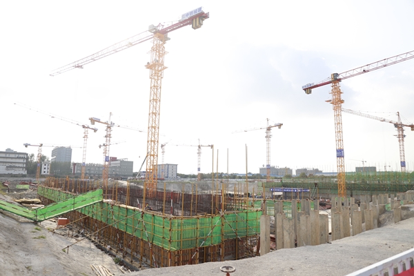 現(xiàn)場檢查的重點項目,所到之處,現(xiàn)場一片繁忙場景,項目施工有條不紊地進行。在鳳棲苑項目現(xiàn)場,只見土方運輸車輛在挖掘機的配合下正在有序穿行,將土方源源不斷的運出場地;德喜大橋施工現(xiàn)場焊花朵朵,工人們正對鋼拱圈和勁性骨架進行嚴(yán)絲密封的焊接作業(yè);德喜花苑施工現(xiàn)場數(shù)十臺塔吊高高聳立,正忙碌地將建筑材料運往各個樓層;尚德商務(wù)樓現(xiàn)場“封頂大吉”四個大字高高懸掛在施工3區(qū)的頂樓,1區(qū)和2區(qū)的工人正在認真綁扎鋼筋;北師大初高中新建宿舍樓和未來科技城北區(qū)工人們正在有序進行墻體砌筑等工作……