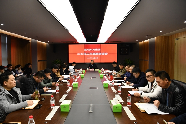 為科學謀劃集團2022年工作思路,促進明年各項重點目標任務開好局、起好步,12月24日下午,鹽城東方集團在集團7樓1號會議室召開2022年工作思路務虛會。集團黨委書記、董事長、總經理王旭東主持會議并提工作要求,集團黨委領導班子成員出席會議并作點評,集團各部門、獨立考核子公司主要負責人參加會議。